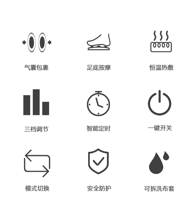 5觸控按鍵(氣囊,模式選擇,開關,氣壓力度,熱敷,);